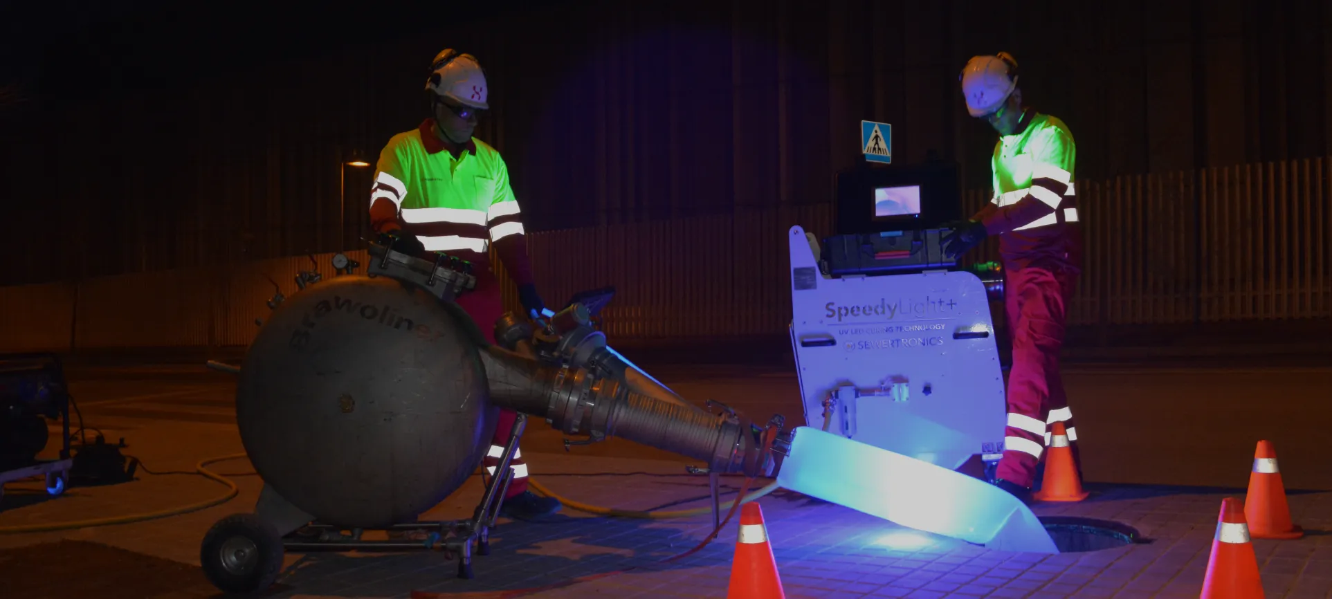 - Reparación de tuberías sin abrir zanja mediante manga continua, encamisado interior y manguitos de fibra de vidrio.